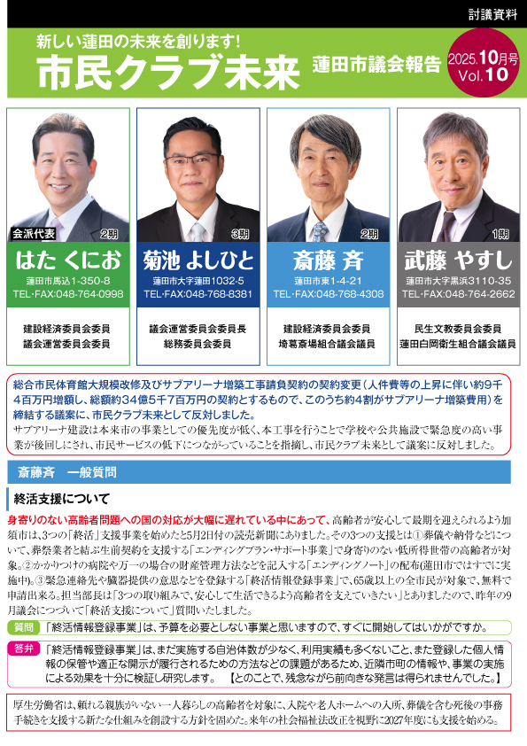 市民クラブ未来 議会報告令和7年9月号